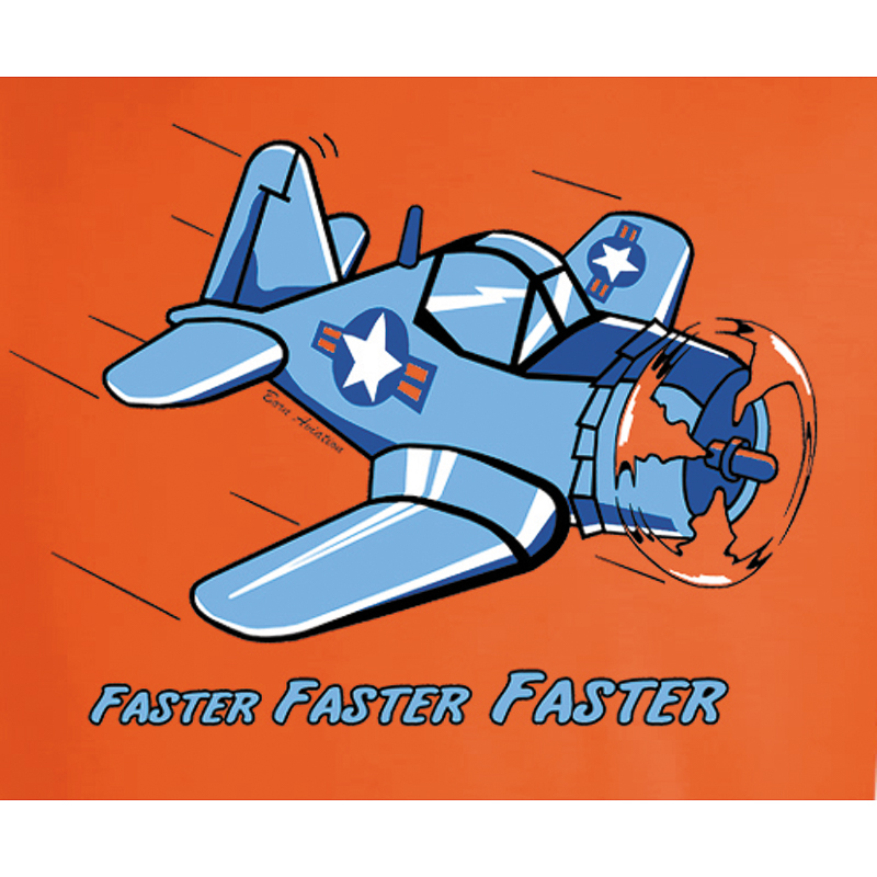 Corsair with Text Faster, Faster, Faster on a 100% pre-shrunk cotton. 2T-4T