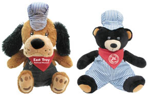 Add your name or logo to our larger plush scarf. Min order on first order of 12 pc’s can mix animals. No min. on reorders. A $25 art charge if less then 12 animals on first order. $.50 each