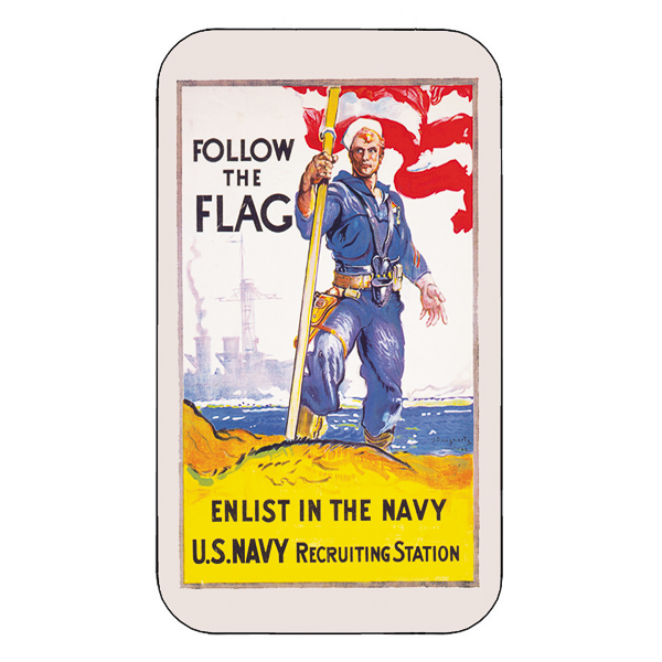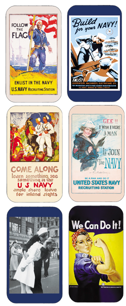 Poster of WWII with Naval Theme. 6 assorted images. display of 12 tins