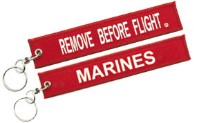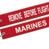 This Embroidered key Chain has Remove Before Flight on one side and Marines on the second side.