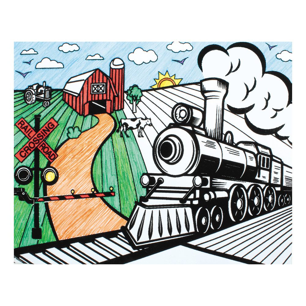 Coloring sheets covered in a black velvet that you color in between. 2 different sheets in each package with colored markers.